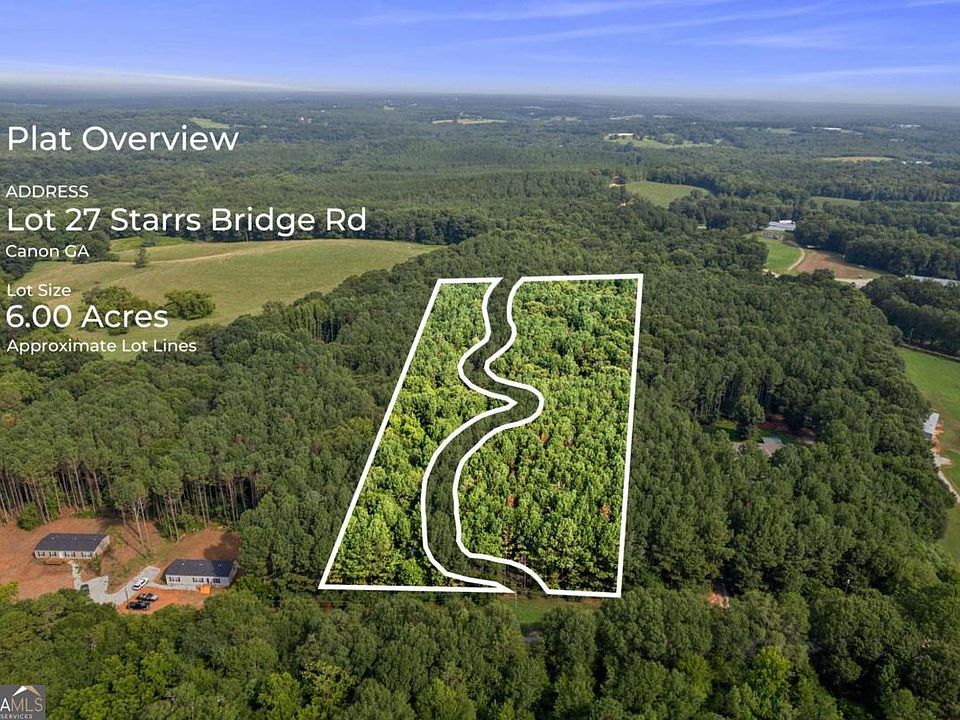 Discover the perfect blend of serene country living and convenient access with this 6-acre parcel located on Starrs Bridge Road in Canon, Georgia. This expansive property offers endless possibilities for your dream home, hobby farm, or recreational retreat. **Size:** 6 acres of mostly flat, buildable land, offering ample space for multiple uses. **Location:** Situated on a quiet, paved road with easy access to nearby towns, this property provides a peaceful, rural setting while still being close to local amenities. **Topography:** The land is a mix of open fields and lightly wooded areas, providing both privacy and beautiful natural scenery. **Utilities:** Electricity is available at the road; water and septic will need to be installed. **Potential Uses:** Ideal for a custom-built home, small-scale farming, or as a private weekend getaway. This is a rare opportunity to own a substantial piece of land in the heart of Northeast Georgia. Whether you're looking to escape the hustle and bustle or seeking a solid investment, this property offers the flexibility and potential to suit your needs. Don't miss out on this chance to create your own slice of paradise on Starrs Bridge Road!