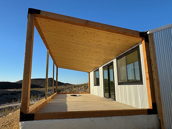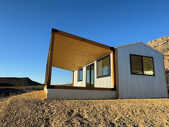 Best location in Terlingua 5 minutes from highway 118. 15 minutes from Big Bend National Park. 20 minutes from the Terlingua Ghost Town Legal, Platted roads. Bank financable. New Construction built to Texas code. 500 SF main house with 400 SF covered porch. 200 SF Guest house with its own private bathroom. Directly connected shared water well. (No hauling, automatic refill). Propane water heating. Split AC's for cooling. Direct vent Propane heat for rooms. Commercial septic with permi