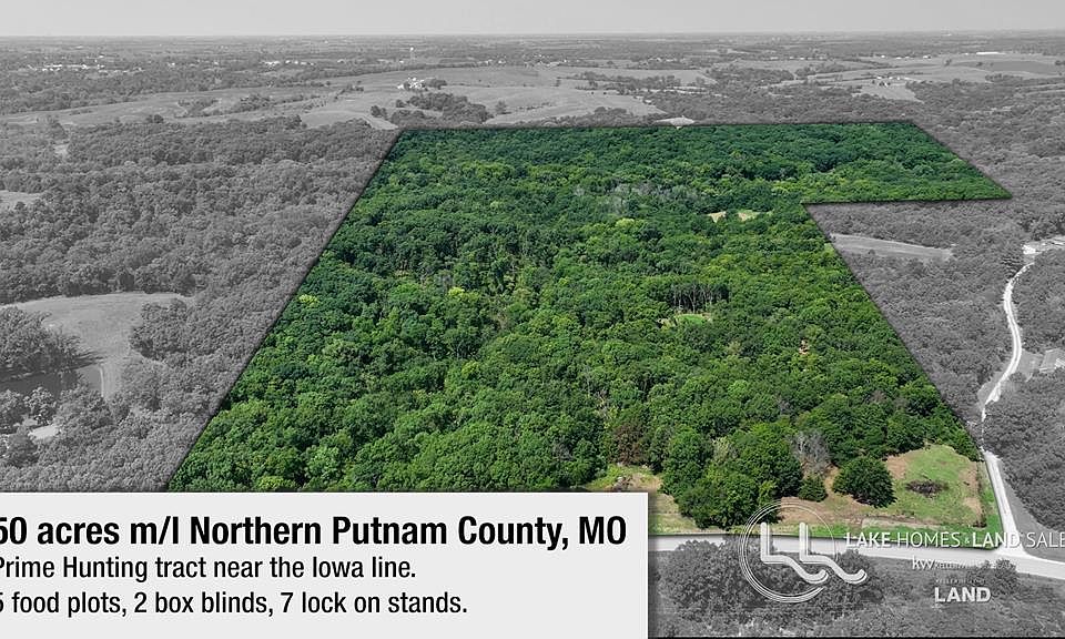 This Putnam County, Missouri, 50 ac +/- tract has been strategically designed & is ready for the upcoming hunting season. With 5 food plots, 30 apple trees, hardwood timber, clover, Blackbird Creek running across the W side of the property, a 6-acre bedding area, 2 elevated 360 octagon shooting blinds, 7 911 lock-on blinds, this property has it all. All blinds have access from the north or south. The well-maintained trail system provides easy access to stands/blinds & ample hunting opportunities. The NE corner of the property has a nice clearing w/electric, water & fiber optic available at the road. This is a great location to build a cabin, home or shed. Situated just NE of Unionville & approx. 6 miles from the Iowa line, properties of this caliber, size, and location are hard to come by.