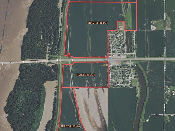 Auction Listing - Large tracts of highly productive row crop ground don’t come for sale very often. This 353+/- acres just across the river from Cape Girardeau, MO is one that a farmer or investor should consider. Property will be offered in 4 tracts. Tract 1 - 84+/- ac w/access from Coyler or Levee Rd. Nearly all acreage is in tillable production, except the NW corner. This is the northernmost tract. Tract 2 - 154+/- ac w/access from Levee Rd & Rte 146. Most of this acreage is also in production. Tract 3 - 56+/- ac on south side of Rte 146 w/access from Comanche Dr. Tract 3 is nearly all in production & runs up to west side of East Cape, IL. Tract 4 - 59+/- ac on south side of Hwy 146 & accessible from Levee Rd. This tract is nearly all in production & borders Mississippi River levee. · Soil maps available · Highly productive soil · Property could be good waterfowl hunting · Perfect access Property will be sold at live auction using multi-par format on 10/05/25, 1pm at Knights of Columbus, 318 S. Spanish St, Cape Girardeau, MO Reserve auction, 7% buyer's premium. Property available to show; seller will accept pre-auction offers. Property will bring what market bears.