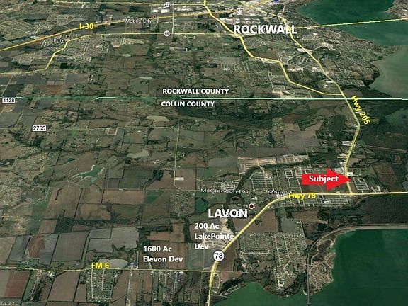 This 4.67 + or - -acre property is an excellent CORNER retail site fronting Hwy. 205 near the active intersection of Hwy. 78, a six-lane highway, and Hwy. 205 which is a four-lane divided highway. Lavon is experiencing explosive growth as residential development continues in the Grand Heritage developments, the 1,600-acre Elevon Planned Development, the 200-acre LakePointe Development, Lake Breeze Estates and numerous other residential developments. This rapid increase in residential development has produced and increased need for retail businesses.