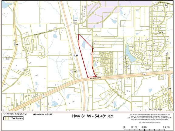 Mostly wooded tract in a perfect location...fronts Hwy 31, Loop 49 and Negem Rd. This tract has tons of use options...it is currently timber exempt with pine timber and some hardwoods, and could be a long-term timber investment. It could also be a housing development, a commercial development or used for recreational purposes. There is a nice sized lake on the property and there is access to water and power. Road frontage: several thousand feet of frontage on both Loop 49 and Negem Road and approximately 900 feet of road frontage on Hwy. 31. Aerial photos were not taken since drones are not allowed due to property being near the airport. DON'T MISS YOUR OPPORTUNITY TO OWN THIS TRACT!