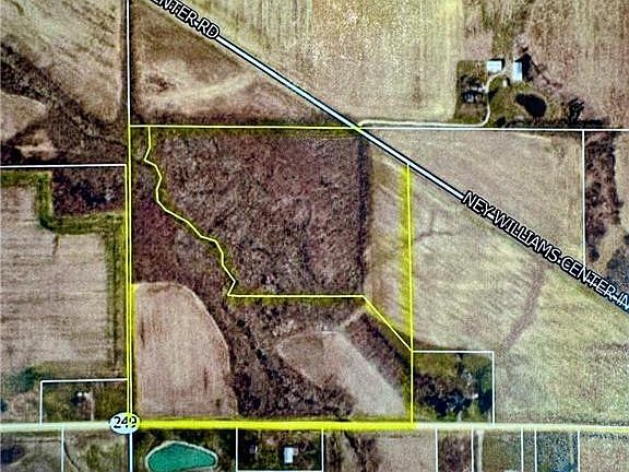 1 parcel of approx 19.56 acres. Located in Washington Township with frontage along ST RT 249 and Ney Williams Center Road, just east of Ney and approximately 11 miles from Defiance. Mainly woods, some tillable. EXCELLENT HUNTING, BUILDING SITE OR LAND INVESTMENT OPPORTUNITY! Portions of the property exhibit frontage along Little Lick Creek. Recent survey available.