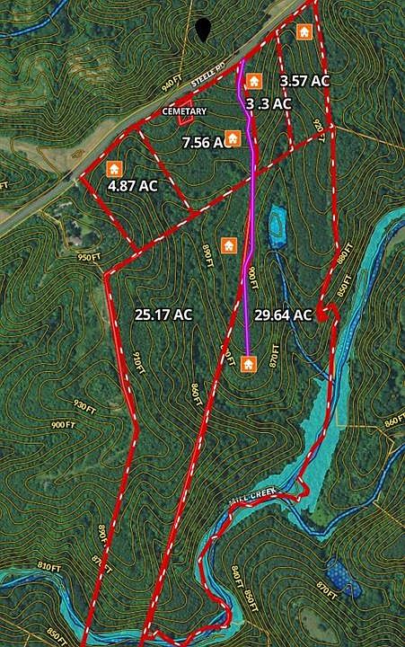 One of 4 less than 10 acre wooded tract. Enjoy country living just 3.5 miles southwest of downtown Sandy Ridge. Build your country home soils work done and No Restrictions. Note: There is about 1/4 acre non descript cemetery on this track. Also on the east side is a 30 foot easement to the two back tracks 25 Acre and 29 acre Tracks 4 & 5 also listed. Neighbor for GIS 2379 Steele Road of right side of subject.