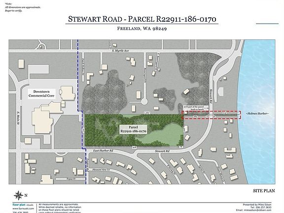 Attention Builders/Developers! 8 acres of medium density residential land along E Harbor Rd and Stewart Rd just north of Freeland downtown and south of Holmes Harbor. Land slopes gently to Holmes Harbor and has excellent views, even better from the second floor of a new home. Parcel contains 10ft wide section that extends all the way to the beach. Freeland water available. Subdividable per Island County. Buyer to verify.