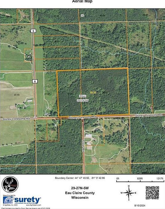 Description: 60+/- wooded acres in Eau Claire county just minutes from the town of Wilson Wisconsin. 40 of the 60 acres of property is enrolled in the Managed Forest Law (closed) program which gives the owner tax benefits in return for agreeing to timber management practices. The property is full of many large white pines. The property sits within half mile of 10s of thousands of public forest lands. The Eau Claire river and lake Eau Claire are located just 4 miles away.This property will scratch any avid outdoorsman's itch.The property has abundant deer sign including many rubs from this fall. The property has multiple building sites whether you want to pull in a camper or build a cabin for a weekend getaway. There is a old existing trail system located on the property.