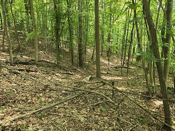 Nice piece of hunting land in Scioto county. Some was timbered nearly 30 years ago but the steeper slopes were not touched and still have some large trees providing a good mix of forest. Old haul roads still in place. You can park by the guard rail across the road. We have a contractor estimate to install a culvert, small driveway, and parking area that we can provide. Once you get passed the steeper part at the bottom, the remainder is very accessible.
