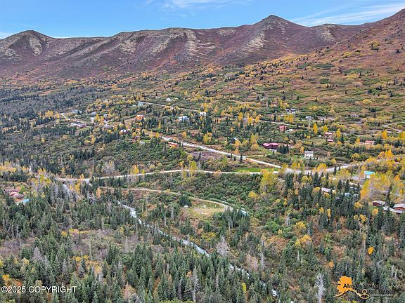 Construct your dream home in your own private, sunny valley! Immerse yourself in gorgeous views of the surrounding hills and mountains, and the peaceful sound of Eagle River. Driveway/road is already punched through. Functioning well is onsite. Conex is included in the sale, and would provide great storage for your future building project. Approximately 800 ft of riverfront adjacent to property.
