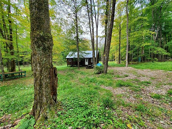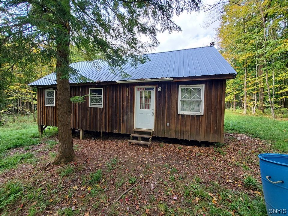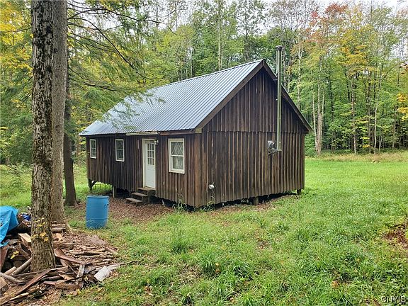 Off grid 22x40 cabin with outhouse. Sitting on 5.6 private acres and surrounded by forest. Excellent hunting property that's right on snowmobile trail. Fully wired with breaker panel connected to exterior generator plug. Solar panels on roof connected to 4 marine batteries and inverter. Rain water catch system into three 55 gallon drums, plumbed into cabin and connected to pump. Two sinks and shower with tankless hot water heater. Semi finished inside with new woodstove, propane heater and insulated upstairs space. Bar with stools, couch, kitchen table and chairs and all other furniture stay with cabin. Very quiet town maintained road.