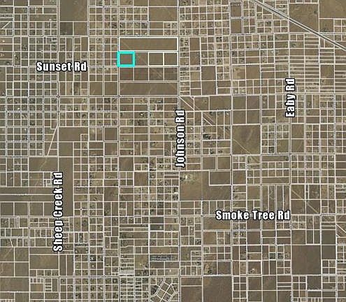 8.59 ac (8.03 ac net) vacant land at Northeast corner of Sunset Rd and Valle Vista Rd in Phelan. Reduction in net size due to Drainage and Electric Easements at NE and SE corners (see attached assessors map). Water line on Sunset. Zoned RL (Rural Living) allowing min 2.5 ac lot sizes. 2 adjacent 10 ac parcels and 27 ac parcel available as well.