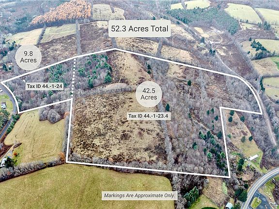 Two Parcels Include Tax ID 44.-1-23.4 (10 acres) and 44.-1-24 (42 acres).
