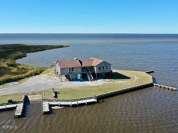 Built in the early 1960's, renovated in the 70's and again in the 80's the Willow Point Lodge, has a commanding view of the Pamlico Sound to the South and the huge salt water impoundment, as well as, the surrounding marshlands to the North. There simply is not a more beautiful and serene spot on the planet! The Lodge setting is completely bulkheaded and has a private boat ramp and boat basin complete with a dock that provides immediate access to the sound and the neighboring marsh islands. The lodge comes complete with underground power, and a 500 gallon propane tank, along with a well and septic. The Lodge is outfitted with a full kitchen and dining area, a large wood burning stove mounted in the chimney, a large bunk room, and three smaller more private bedrooms.