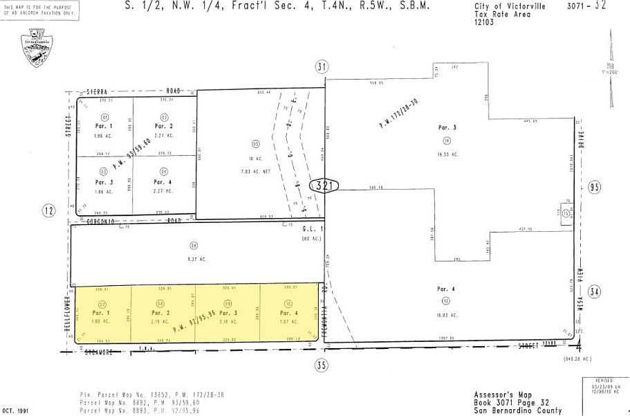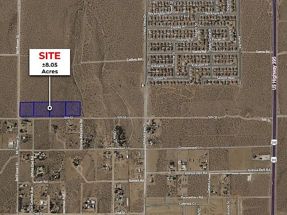 Four parcels totaling ±8.05 acres are now available, zoned R1 - Single Family Residential, offering an excellent opportunity for investors or custom home builders. With paved road access just ½ mile to the north at Bear Valley Rd. and approximately ¾ mile to the east at US-395, this site provides convenient access to surrounding areas while preserving a sense of privacy and seclusion. Water and power are conveniently located at the SW corner of the site, at the intersection of Bellflower St. and Sycamore St. Buyer to verify all information contained herein.