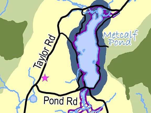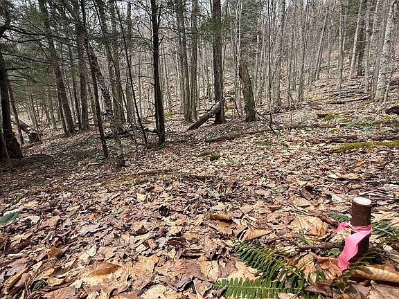 Beautiful 5+ acre lot with oh-so-private elevated and wooded house site, rough driveway easement, 4 bedroom WW permit and utility pole on road frontage. This is a slice of woodland showing VT's glacial beginnings. Your dream home could be nicely elevated up, back and behind a formidable ledge at the road and stoic, tall Pines. A driveway easement at Northern property line already provides access via wide old logging road to plan house site. House site is sloped, ideal for walk-out basement plans. The lot drops to the South, sprinkled liberally with saplings and rises up again toward Metcalf Pond. You will find some quartz-dotted ledge bands and a level area to the back, all pretty perfect for future wandering, running, biking or winter trails. Also includes a small boulder garden. Pins flagged. Just .8 mi to Metcalf Pond's only public access, and 15 mi to St. Albans. Call to walk it today.