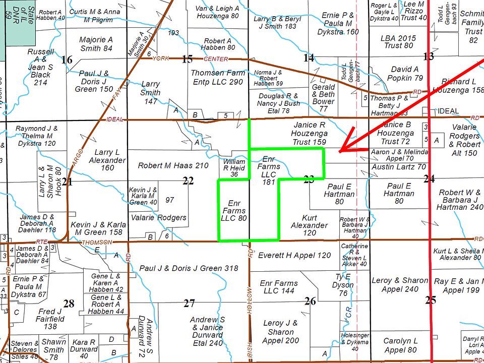 Approx 263 acre farm east of Thomson, in sections 22 & 23 of York Township. Approx 236.67 tillable, 54x30 sided barn/shed with large garage door.