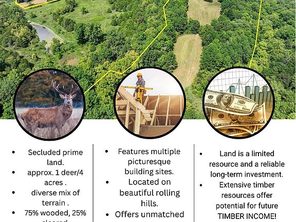 In addition to the perfect mix of cleared ridges and plenty of Kentucky woods, according to a recent government estimation, there is approximately 1 deer per 4 Acres, an excellent ratio for hunting. While this may be a hunter's paradise, It is a great site to build your dream home or family compound, with some electric already ran to an older building on the property. Come see this land for yourself and reach out with any questions!