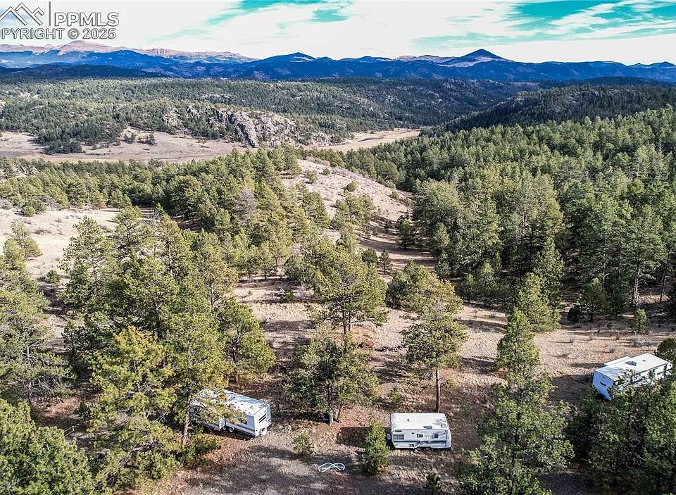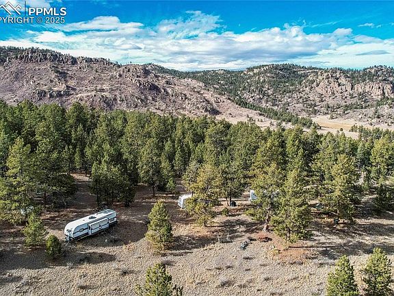 End of the road privacy. No covenants, no HOA. Outdoor lovers paradise. Hike to your heart's desire on this 30 acre parcel. Unobscured views of Pikes Peak and Mt. Pisgah, 360 panoramic views. Property is 80-90% fenced and all materials are on site to complete fencing if desired. Two level meadow areas perfect for building, seasonal camping, or a dry shed. More wildlife than you can imagine. Owner has seen Elk, Deer, and wild Turkey on the land. Star gazers dream spot. Agricultural status for lower taxes. Near 11 Mile Reservoir and GMU hunting. Only 50 minutes to Woodland Park or Cañon City. Explore the nearby mountain town of Cripple Creek for entertainment, dining, school, library, and groceries. Camper trailers is included with sale or will be removed if the buyer would like. There is a voluntary POA with Four Mile Ranch 2600 to help with road maintenance in the subdivision and allows owner to claim Agricultural status with the county for tax purposes.