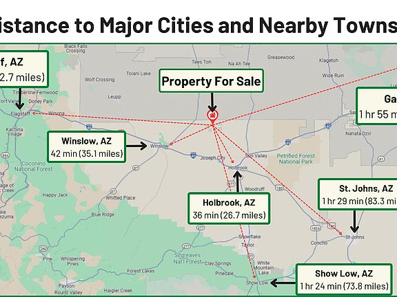 NO RESTRICTIONS! NO HOA or POA! LOWEST PRICED 80 ACRES IN ARIZONA - don't miss this amazing deal! Cooler climate than Phoenix with rain in the summer (average 50 days per year) and snow in the winter (average 7 days per year). 2 creeks cross this land so you may have some water when it rains. Anything goes on this all flat land, including camping, mobile/manufactured homes, RV's, tiny homes, farms, agricultural, or pretty much anything else you want to do! Zoning is A-General. Also not in a flood zone! With I-40 to the south, SR 87 to the west and SR 77 to the east, you can get anywhere you want to go! Amenities? Continued in Supplement... You are only 40 minutes from a Walmart Supercenter, Safeway, McDonald's, Coffee shop and Mexican Restaurant! Seller financing available with flexible terms depending on how much you want to put down and how much you want your monthly payments to be, and what you want to do with it.