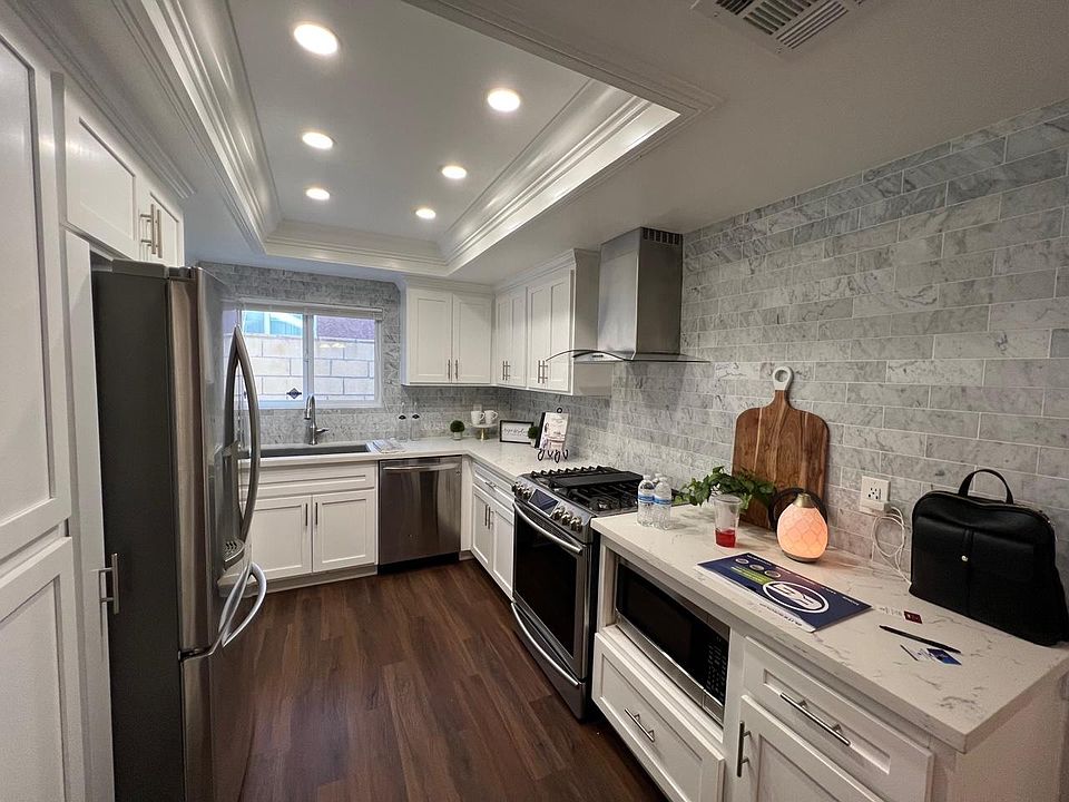 OPEN HOUSE ON SATURDAY NOVEMBER 26, FROM 12 PM TO 3 PM. TAKING APPLICATIONS NOW. Available immediately. Please send message for address. $150 monthly utility credit is given to tenant GREAT location and neighborhood, Riverside 92503 near McKinley and Indiana, just steps away from Corona, shopping centers, entertainment, schools. Address will be provided upon receipt of completed applications due to security purposes. Quiet MAIN HOUSE behind SAFE secured gate, 2-car garage door, generous size, 3 bedrooms, 2 remodeled bathrooms, BEAUTIFULLY REMODELED kitchen equipped with high-end appliances. FRESHLY painted both interior and exterior. Exceptionally well-kept, CLEAN and BRIGHT. In addition, it comes with tankless water heater, copper plumbing, ceiling fans in all rooms, laundry hook-ups inside garage, rock landscaped backyard. As a bonus, whole house has been installed with Aquasana water filtration system. Then comes another extra bonus, an above ground spa with control heat is ready for you to enjoy year-round. C'EST LA VIE! No pet allowed, no exception $150 monthly utility credit is given to tenants Full credit and background check required. 1-year lease required. Non-smoking and no pets (sorry, no exception), proof of renters insurance coverage required. Tenants are responsible for all utilities expenses but will also receive rent credit each month for partial utilities expenses. Landlord is solely responsible for lawn maintenance.