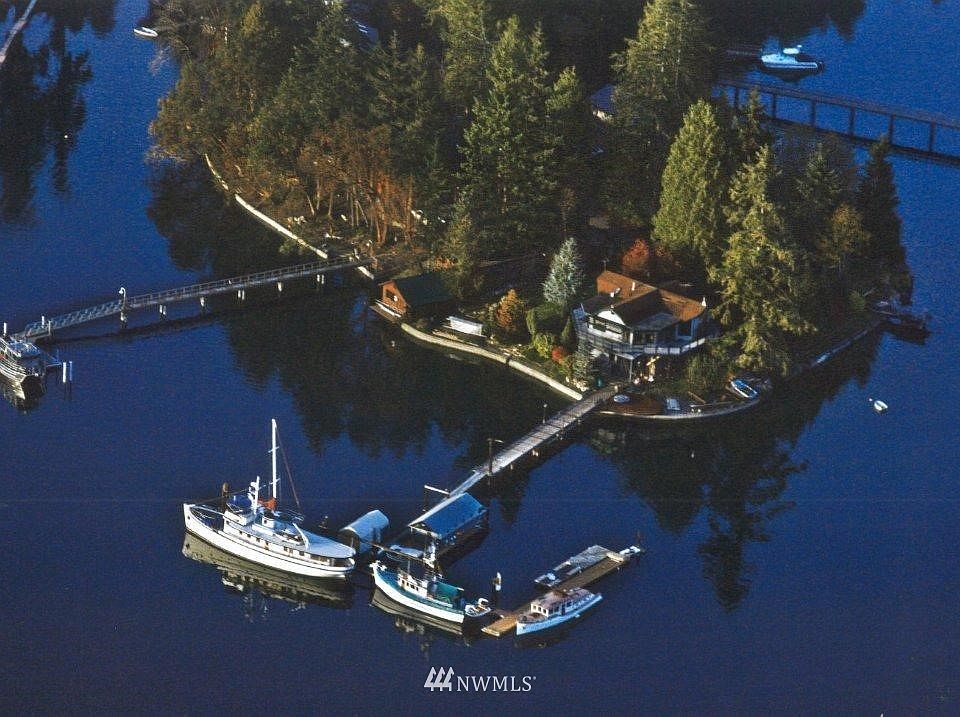 Approx 400 Ft of low bank waterfront with deeded tidelands in Pt Madison Bay. The property has a park like setting. Dock system is made up of about a 150 ft pier & 50 ft floating dock that meets floating dock that is 140 ft. There is a 80 ft North/South floating dock. The dock was built to commercial standards with multiple piling dolphins. The long dock could accommodate a 100+ Ft vessel. Home has of custom features with rosewood floors and teak Cabinets. Beach cabin has lots of possibilities.