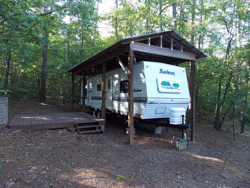 Beautiful setting on this 1.55 acres lot with 33' camper, 3 bedroom septic, 200 amp electrical panel. Great place to build a new home or use it as is for a weekend get-a-way near the lake. The 1.5 acres is mostly wooded and lays great with a circular driveway and is in a very private location and is only 3 miles from Ryans Branch public boat launch on Philpott Lake. Central location between Fairystone Park Lake and Philpott Lake. The camper is a 2001 Salem with a slide out, good a/c, sleeps 8. The pole barn around the camper has 6x6 post and a metal roof, installed within the past 4 years. Very clean and well kept property.