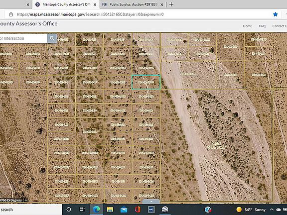 Vacant lot with physical access and borders State land. No known utilities. Sits inside the Hassayampa flood zone, but not in the wash. APN 504-32-028M Self-close for a significant discount. Text 254 two four seven 4385 for answers to your questions