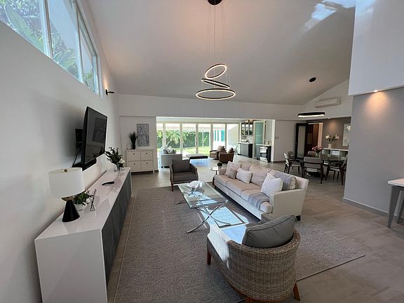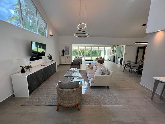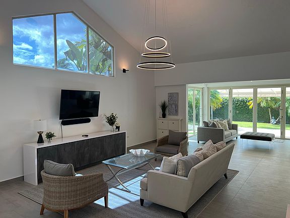Dreaming of your own slice of paradise? If you're searching for a safe, family-friendly community in the gorgeous Dorado Beach area, look no further! This recently remodeled single family residential property in the tranquil gated community of Sabanera offers a luxury lifestyle in beautiful surroundings, this home has easy access to all of Dorado's amenities, including the clubhouse, 2 pools, 4 tennis courts, a gym with an outdoor track. Situated in a quiet and child-friendly cul-de-sac, it's close to 2 children's playgrounds, a grocery store, and several large lakes for fishing and paddling, and within walking distance of one of Puerto Rico's top private schools, as well as the island's newest and most advanced hospital, Orlando Health. In addition to 4 bedrooms, 3.5 bathrooms, and an open-plan kitchen, dining, and living area, this home has 2,715 square feet of air-conditioned living area with an open terrace, a double carport (golf cart included), a laundry room, and a separate office space. Inside, this home feels open and airy. Large, well-placed windows fill each room with an abundance of natural light, whilst high vaulted ceilings help to maintain an ambient temperature. The kitchen comes complete with modern appliances, including a large fridge-freezer, a double oven, and a large five-ring gas stove cooker. It has a small island which provides additional workspace and seating for two, whilst a larger dining area connects the kitchen to the rest of the family space. In the main living area, a large pentagonal window creates a focal point and draws attention to the vaulted ceiling. This residence has been freshly decorated with contemporary furnishings, and luxury features such as ceramic tile flooring and artistic light fixtures add elegant finishing touches. Towards the rear of the property, an additional seating area is surrounded by door-height windows, creating a sunroom effect. The patio doors open to a private fenced back yard which has a paved path, mature native trees, and a shaded outdoor area. With four generously sized bedrooms and innovative storage spaces, this home is ideal for families and those who enjoy hosting. Three of the bedrooms have ensuite bathrooms, so guests have their own private space. The master bedroom is spacious and bright, with a large walk-in closet and an enormous ensuite, complete with a walk-in shower, a bidet, and a double vanity with his and hers sinks. One of the bedrooms has large patio doors leading to a private outdoor terrace, offering a peaceful place to relax in the sun. Sliding doors seamlessly connect this room to the rest of the home, giving it an open feel. This residence has several amenities which will appeal to busy families; a separate laundry room with large cabinets provides plenty of additional storage space. Attached to the garage is a dedicated home office with room for multiple desks, allowing a private workspace for those who want to maintain a healthy work-life balance. It also has: - Extra-large diesel backup generator - Water cistern - Solar heated water - High-speed fiber optic cable internet (a must for modern island life!) The home also comes with 24/7 security guards, access to one of the best private schools on the island (TASIS), and is within easy reach of the clubhouse, pool, tennis court, and the top hospital on the island - Orlando Health. Renter pays utilities.