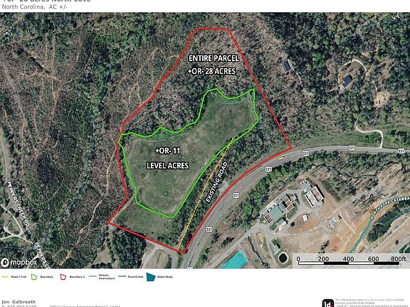 Rare opportunity to own a highly sought after prime property in the North Carolina mountains. Approximately 28 unrestricted acres (no zoning), 11 of which are level and cleared. Ideal for residential or commercial development, farming, recreation, or investment. The north side of the property has a forested gently sloping ridgeline with tremendous long range mountain views. 1,100 feet of frontage along Hwy 221 with a 900 foot long existing road leading to the elevated level acreage. Centrally located between Boone (1 hour) and Asheville (50 minutes), with quick access to other premier destinations. Just 20 minutes to Lake James and 15 minutes to Linville Falls, the Blue Ridge Parkway, Linville Falls Winery and Linville Gorge Wilderness.