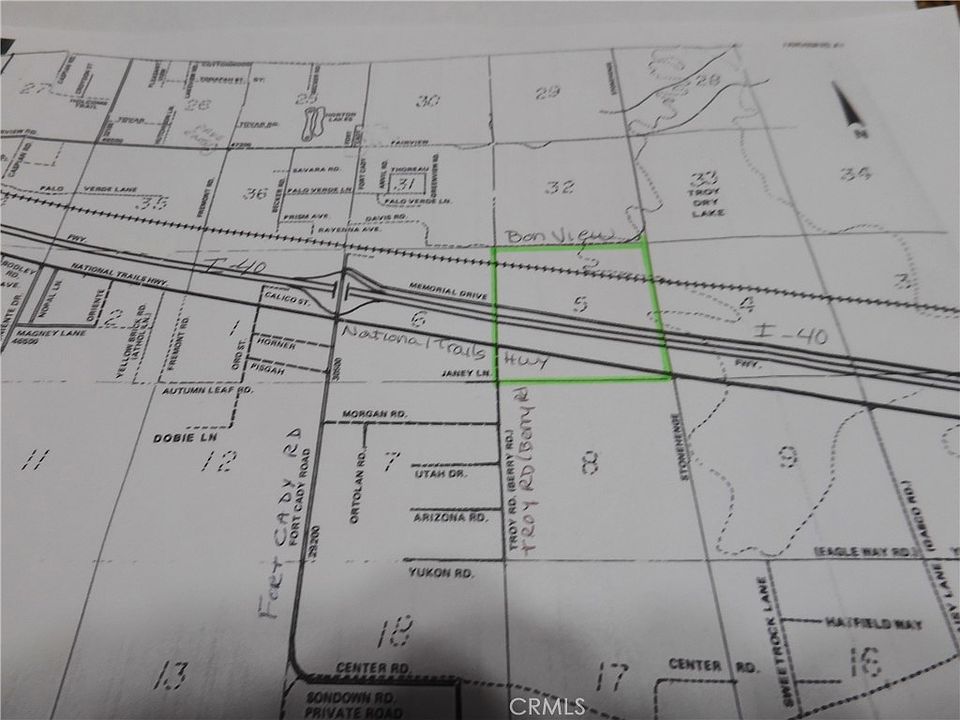 557.77 acres in Newberry Springs. It consists of 4 parcels, stacked on top of each other, that make up an entire Section of land minus the easements for US Hwy 66/National Trails Hwy, I-40, Memorial Drive & the railroad easements. The most southerly parcel, APN 0529-151-09, is 27.26 acres. It has frontage on the south side of US Hwy 66 and the north side it fronts on the south side of east bound I-40. It begins at Berry Rd (AKA Troy RD) and continues east 1 mile to Stonehenge Rd. The next parcel going north, APN 0529-151-08, is 129.51 acres. It has frontage on the north side of US Hwy 66 & on the south side of east bound I-40. The next parcel going north, APN 0529-151-07, is 44.31 acres. It has frontage on the north side of Westbound I-40 and frontage on the south side of Memorial Drive. And the 4th parcel going north, APN 0529-151-06 is 373.53 acres. It has frontage on the north side of Memorial Drive and goes all the way up to Bon View Ave. Plenty of room for Solar farm, housing development, crops, livestock or all of the above. Pistachios, Apricots, Avocado, Peppers & many other crops do well in this area. Buyer to verify zoning & availability of electricity. Residents in the area use private wells, septic systems & propane as there are currently no public services water, sewer or gas. Electric should be available all along Us Hwy 66. Buyer to verify zoning & availability of electricity. DIRECTIONS: From Barstow, take I-40 towards Needles. Take the Exit Fort Cady Rd., get on US Hwy 66, continue east 1 miles to Troy Rd. (AKA Berry Rd). You will be at the approximate SW corner. Continue another mile east on Us Hwy 66 to the approx. SE corner of the parcels. To view the parcels on the north side of I-40, go back to Fort Cady Rd, turn right right & cross over I-40, turn right on Memorial Drive and go 1 mile. The property will be on your right & on your left.