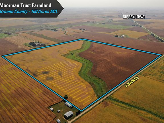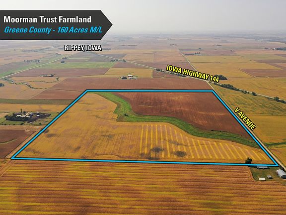Greene County, Iowa Farmland Auction – Mark your calendar for Friday, November 7th, 2025, at 10 AM! I'm pleased to represent the beneficiaries of the Raymond E. Moorman Trust in the sale of their family farm located just north of Rippey, Iowa, and south of Grand Junction, Iowa in Greene County. The farm consists of 160 acres m/l and will be offered as a single tract.