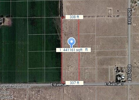 This is a approximately 10.13 acres of vacant land. Approximate dimensions are 322ft (W) x 1,320ft (L), 425,040 Sq.Ft. Currently this lot is a desert land, can be used for irrigated farm. Source: LA assessor portal.