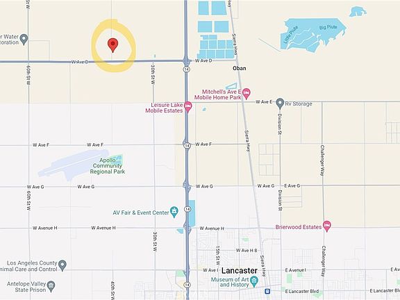 VACANT LAND PRICED TO SELL QUICK- Just under 5 Acres situated north of the Lancaster, California outskirts. The rectangular corner lot is exactly at Ave C-12 & 40th St W and conveniently near Highways 138, the Antelope Valley 14 Freeway and a 35 minute drive to Interstate 5. According to LA County ZNET, the zoning is MXD-RU: "Rural Mixed Use Development". Come build around peace and quiet, live that ranch life, cultivate, store or whatever your imagination brings. Buyer to conduct their own due diligence.