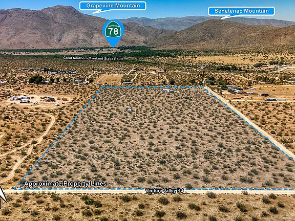 Vacant Land – Julian CA (Shelter Valley) Make this rural lot your home with space to spread out on. Features the "High Desert" part of Julian with good roads, dark skies and Panoramic Mountain Views! California Riding and Hiking trail and Pacific Crest Trail are close to this property. This 20 acre parcel already has a great well that can pump 18 GPM plus & it's 284' deep with water at 84' and has a PVC liner. There are two metal containers on the property which will convey. There is a Lorentz PS600 solar well pump but it's not working. The property is zoned S92 (General Rural) , allowing for a single-family residence, manufactured, mobile home, ranch, agriculture or livestock. This area is surrounded by the Anza Borrego Desert State Park. Power available, needs septic for permanent home build. State park adjacent to the south parcel boundary.