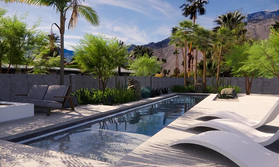 Flat, clear, infill lot in an established neighborhood of central Palm Springs. On a quiet block with excellent mountain views surrounded by charming midcentury homes. Zoned R1C. The location is prime. Verbena is a very special street - acclaimed architect Donald Wexler designed and built his family's personal home on Verbena, one block down. Walk to lovely Ruth Hardy Park, its tennis courts, grassy lawns and walking paths. No HOA. Fee land. Design drawings by Mark Daniels AIA for a 3 bed 4 bath house plus casita with 1 additional bath are included and shown in renderings.