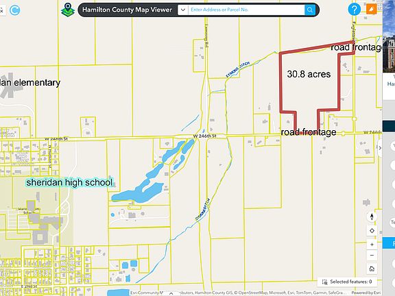 30 acres +/- of ag land in the path of growth in Hamilton county .75 miles from entrance to Sheridan High and middle school on 246th street.