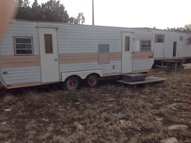 Hunting, heavily wooded hillside and valley 25 acres. Older, but nice clean travel trailer with a/c-heating. Cleared 30' property line cinderos and one lane through property. Axis, whitetail, hogs and turkey. Feeders, blinds, farm suv, tractor, and old storage trailer convey to buyer. About 12 mi. East of Rocksprings.