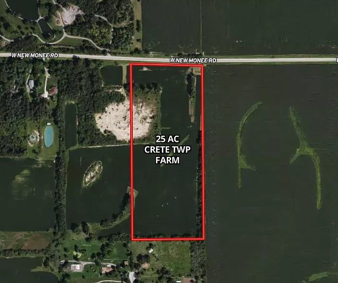 25 acre parcel right outside of Crete, IL city limits now available. Nice frontage on New Monee road with a small amount of timber makes for an ideal setting for building your personal compound or estate. This property has a Soil PI of 115.4, with approximately 75% tillable acres.