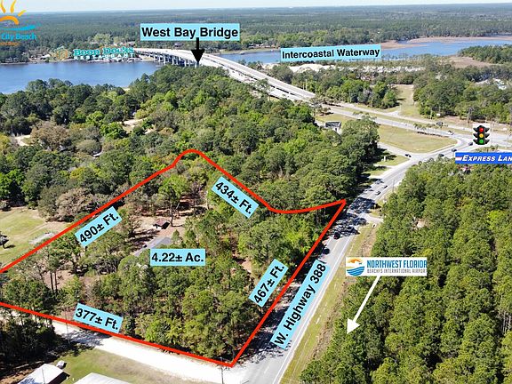 Prime 4.22± acre commercial development site on W. Highway 388 in the heart of one of Florida's hottest markets, West Bay/Panama City Beach and home to Latitude Margaritaville, a mixed use development included in the 110,000± acre Bay-Walton Sector Plan. The site is strategically located just 1.5± miles south of the primary entrance to Latitude Margaritaville and 4± miles west of Northwest Florida Beaches International Airport. Convenient access just 700± feet east of the Highway 79 corridor and the West Bay Bridge, the gateway to Panama City Beach to the south, and Latitude Margaritaville to the north. Zoned General Commercial (C-3) in Unincorporated Bay County which allows for many commercial uses. Bay County public water and sewer are available along W. Highway 388. There currently is a 2,136± square foot home on the property built in 1975 which may or may not contribute value. This site with its current entitlements is ready for immediate commercial development.
