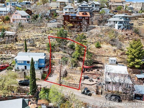 This unique lot offers stunning, unobstructed views in the heart of Jerome. The town requires a minimum home size of 900 sq. ft., but imagine a 450 sq. ft. footprint with a two-story miner's shack design—it would be incredible! The lot extends all the way back to the house above, providing beautiful scenery, mature trees, and wonderful neighbors. If you love thinking outside the box and prefer creativity over cookie-cutter homes, this property is for you! Engineering will be required to assess and possibly reinforce the existing tiers before building, so keep that in mind. Developing this lot will be challenging and costly—but absolutely worth it. Your own parking space included No trailers allowed (anywhere in Jerome)