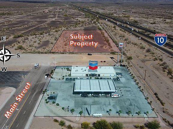 C-2 zoned with many applicable commercial uses. Riggles is the furthest east I-10 Interchange in Quartzsite. One short block to Main St. and directly east of the Chevron. Excellent Hotel/Motel Site, Restaurant, fast food etc. 2 million + visitors per year. Nearly 660 ' of freeway visibility. Adjacent to Freeway ADOT Land. Utilities Just to the west of subject.