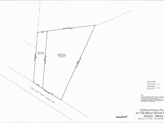 LOCATION, LOCATION, LOCATION! Your blank canvas awaits for an amazing opportunity to build on this 4+/- wooded acre lot with 200 feet of frontage. See attached "conceptual plan" and imagine living in ideal home! Buyer to do all the due diligence with regards to use of property and structure(s) to be built upon it. Lot located next to 2173 West State Rd - "pink" ribbons placed at the road depicting approximate frontage. Scenic, rural location & just minutes away from Ashby Center, the S. NH border plus Watatic Mountain, Damon Pond & Willard Brook State Forest for hiking, swimming & more!