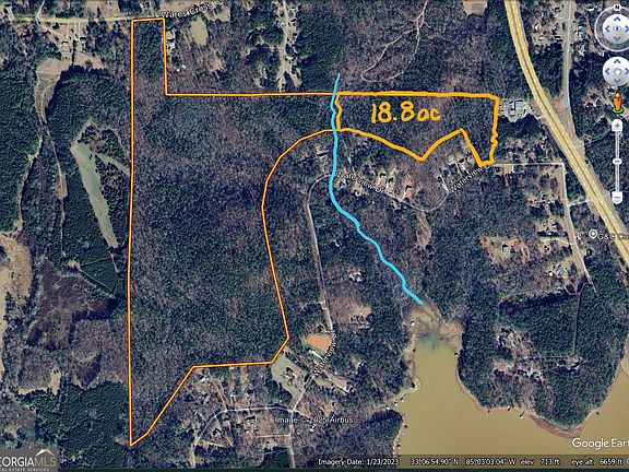 0 Waterview Drive, LaGrange, Ga: In the Hillcrest area, this approximately 18.8 acres has about 440 feet of frontage on Waterview Drive (150 feet are required for building permit). It has a creek in the front and one that makes the west property line. It has nice topography (see map & photos of views) with room for a shop or barn, side by side trails, foodplots, pastures, etc. The photos show the creeks and vistas, large hardwoods (the pines were harvested), street view and nearby boatramp. It's 1/4 mile across US 27 on the Corps of Engineers Clark Recreation Area where there are picnic tables, grills, restrooms. 3.5 miles to Sunny Point Recreation Area on Ga Hwy 219. Downtown LaGrange less than minutes, convenient to bypass, etc.