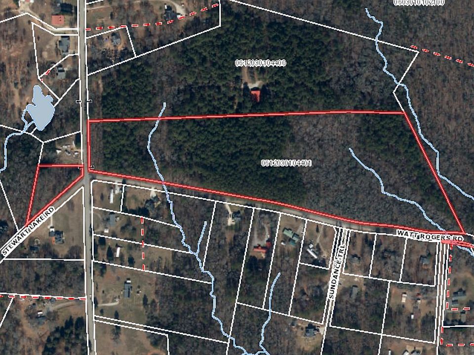 ~22.5 acres of heavily wooded rolling terrain. ~2130 ft of road frontage on Watt Rogers Rd and ~265 ft of road frontage on Eastview Rd. Acreage includes ~1 acre on corner of Eastview and Stewart Lake Rd. Water available through Greenville Water. Septic required. High speed Internet available.
