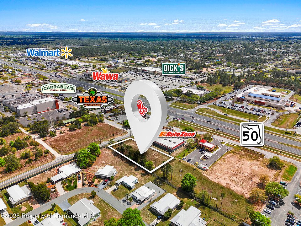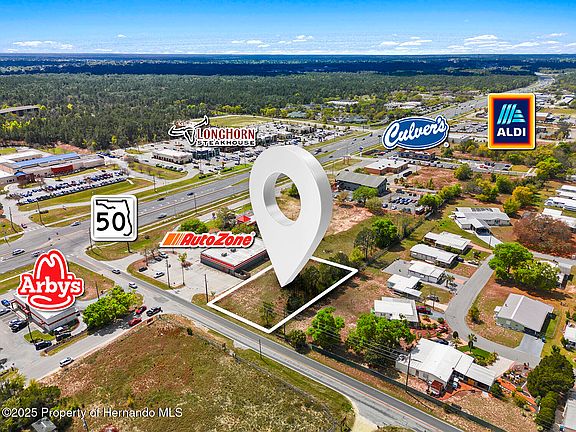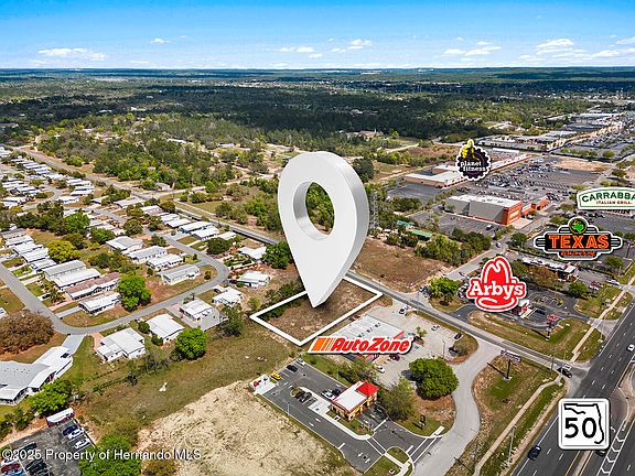 Unlock the Perfect Opportunity to Build Your Business in the Heart of Brooksville! Don't miss this rare chance to own a high-visibility commercial parcel located in the thriving core of Brooksville's main commercial corridor. This impressive half-acre corner lot sits prominently at the intersection of Weeping Willow Street and Cortez Boulevard (SR Hwy 50), right next to AutoZone—offering unmatched visibility and accessibility. With General Commercial (C-2) zoning already in place, this site is ready for development and suited for a wide range of business uses. Its elevated position provides excellent exposure to over 40,000 vehicles per day, making it a prime location for a freestanding building with bold signage that grabs attention. Strategically situated across from Western Way Shopping Plaza and surrounded by national retailers and popular dining establishments—including McDonald's, Starbucks, Burger King, Wendy's, Crumbl Cookie, Panera Bread, Texas Roadhouse, Carrabba's, LongHorn Steakhouse, and more—this property places your business right where your customers already are. You'll also be in close proximity to major retail anchors like Bealls Outlet, Ross, Shoe Carnival, Marshalls, HomeGoods, Petco, Michaels, Walmart, Sam's Club, Hobby Lobby, and BJ's Wholesale Club. Whether you're launching a new venture or expanding your footprint, this location offers the traffic, visibility, and convenience every business owner needs to thrive. Seize this opportunity—Brooksville's next success story starts here.
