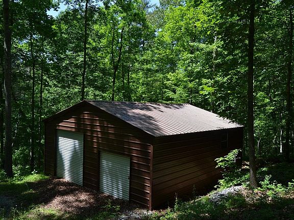 This 5+ acre lot offers a serene setting. Affordable lot with a tractor garage and driveway through the property. Perfect for your new home or quiet retreat!