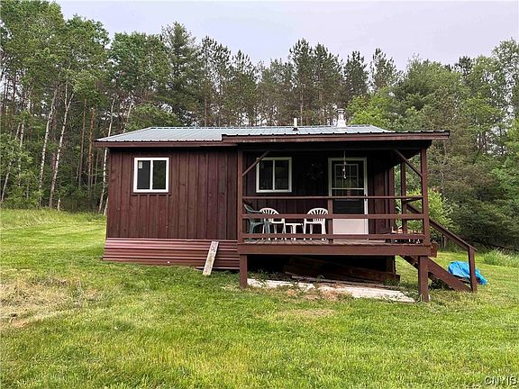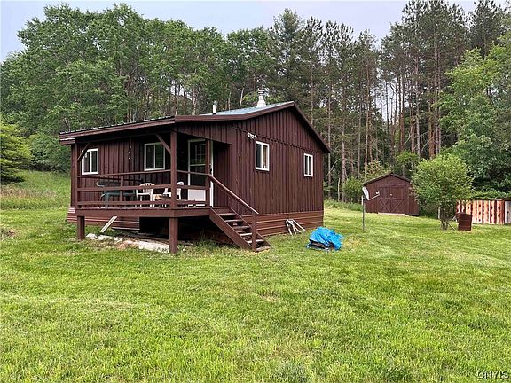 Well-maintained 400 square feet cabin situated on 7.7 acres of Scrubby Pine Rd, a private road off Willow Brook Rd in Little Genesee NY. Cabin built 2014 with two bedrooms, one full bath, and a wood stove in the living room for main heat source. Cabin is fully-insulated with 100 amp electric service. It features an Allegany County approved 1000-gallon septic system, and spring water supply. Bathroom requires a vanity and some finishing touches. Additionally, there are two large sheds outside the cabin for storage purposes. The property offers ample space for family members to bring their campers or for potential expansion of the existing cabin. It also includes a campfire pit for enjoyable bonfires making it an ideal place for family gatherings. The land is mostly level with some rolling hills on the east side. Apple trees are scattered across the property adding to the natural beauty. Access to the property is via a private road with a locking gate ensuring privacy and security. Cabin is move-in ready and offers a perfect retreat for weekends and enjoying the outdoors. Great opportunity to buy a property with all the utilities already in place. (Best offer due Sunday 6/18 at 5pm).