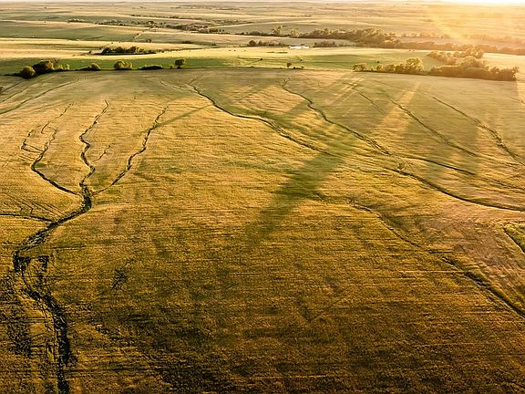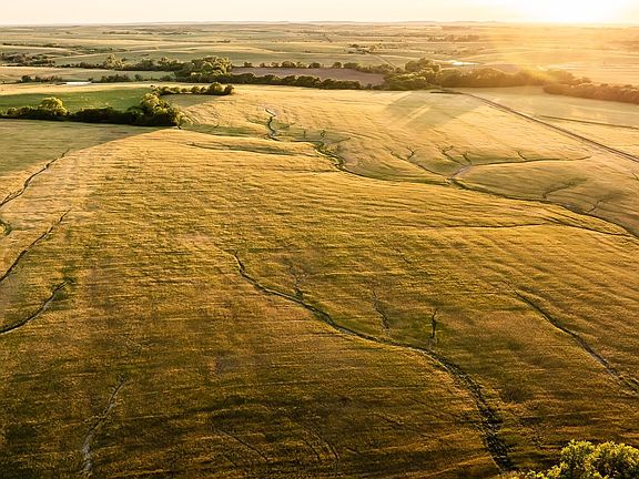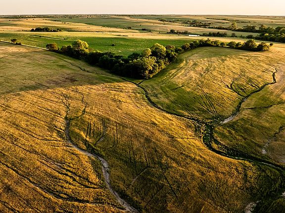 Located on the McPherson/Saline County line in northeast McPherson County sits this well-rounded 302 +/- acre combination farm. This property has excellent diversity consisting of tillable farm ground, native grass pasture, prairie hay meadow, tame grass, and a live creek with hardwoods and multiple springs! The tillable farm ground is broken out into two different areas on the property. There are 118 +/- tillable acres along 25th Avenue which have a 60 NCCPI and soils consist primarily of Class 2 Crete Silt Loam and Class 3 Irwin Silty Clay Loam. The remaining 17 +/- acres sit along Harvey Creek and have an NCCPI of 63.33 made up of primarily Class 2 Smolan Silty Clay loam soil. These farmable acres have grown a variety of crops over the years and will be good producers for years to come. The west quarter of the ground has around 132 +/- native grass acres that are currently being utilized for cattle grazing. This pasture boasts a hearty stand of grass, above-average fencing, and two ponds fed by springs ensuring water will not be an issue even in the worst of droughty conditions. Centrally located on the farm is 28 +/- acres of prairie grass hay meadow, this area can continue to be used for hay production or additional grazing acres if needed. Along 25th Avenue, there are around 5 +/- acres of brome grass and prairie hay for additional grass production. Don't overlook the recreational aspects that this farm offers as well! The combination of Harvey Creek, timbered draws, tillable fields, and lush grass gives you all of the necessary ingredients for many types of wildlife in the area to frequent this property and give you a good chance of success. The main pond is naturally stocked with fish and can also be utilized for waterfowl hunting as well. The farm will sell subject to current tenant rights. There is an additional 148 +/- acres that adjoin this land to the southeast that is also available for purchase. For questions or to schedule a viewing of the property contact the listing agent.