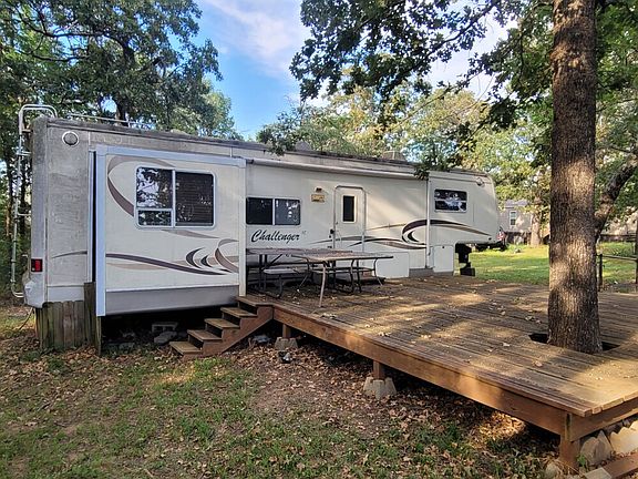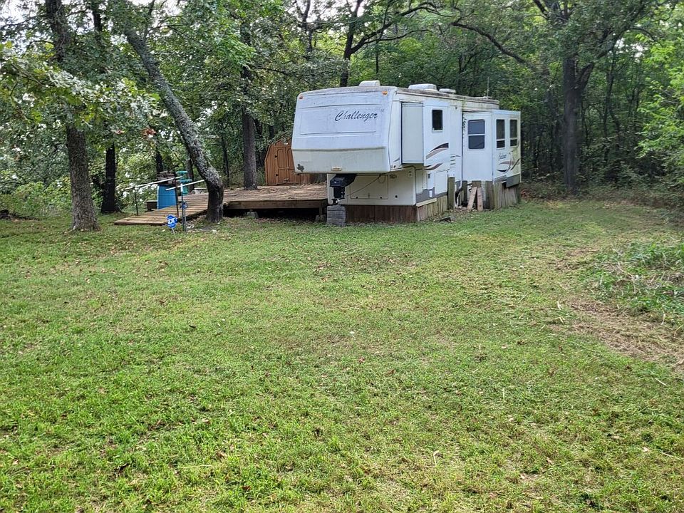 Experience a relaxing living with this breathtaking view from this raised lakefront property. Nestled along the Shoreline of Lake Eufala, this property offers sweeping views of the lake while only being 15 minutes from Checotah. The elevated position of the property provides an exceptional vantage point to take in all this lake has to offer. Direct access to the lake for swimming, fishing, kayaking, or boating. A fully functional and move-in-ready 5th wheel sits on the property, featuring modern amenities, including queen-size bed, full kitchen, bathroom, and a spacious, custom-built deck. The deck is a perfect spot for dining, lounging, or enjoying stunning sunsets over the lake. The property has a 1,000-gallon septic tank with lateral lines run, and it has 2 electric and water hookups on the property. This place is perfect for a relaxing vacation spot or a forever home.