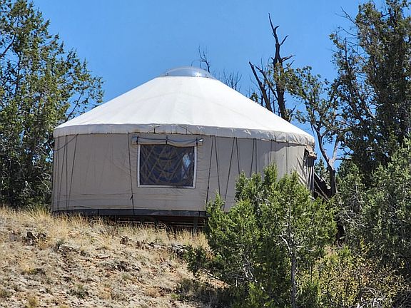 Escape to your own private oasis! This 36-acre lot offers a unique and tranquil retreat. Nestled amidst the stunning natural beauty of rolling hills covered in juniper and pinon pines, meadows and a seasonal stream, this property is the perfect haven for those seeking solitude and connection with the great outdoors. The highlight of the property is the 18-foot yurt, a cozy & comfortable living space. There are a couple of fire pits and plenty of firewood onsite. Complementing the yurt is a large, concrete-floored barn-style shed, providing ample storage and workshop space. This structure can be transformed to suit your needs, whether you envision it as a workshop, studio, or even additional living quarters. This property's remote and secluded location ensures privacy and tranquility. OWC