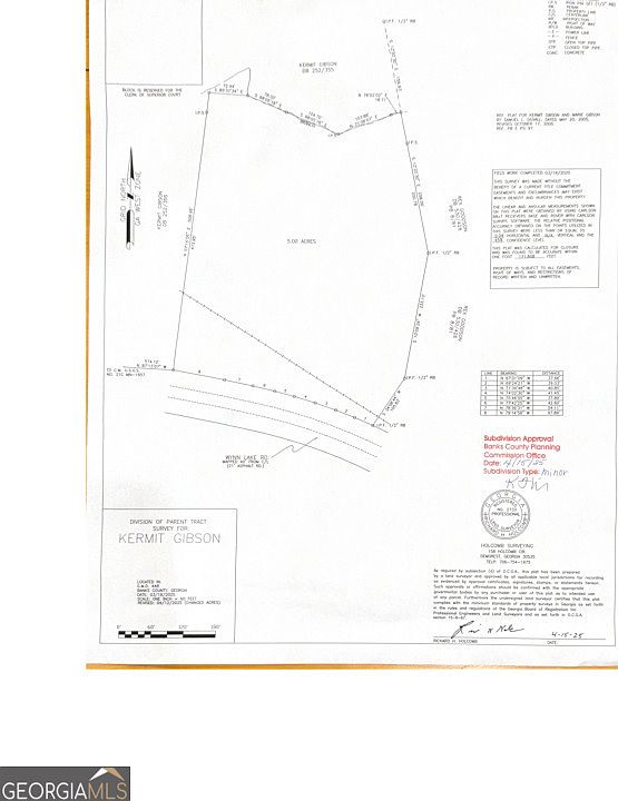 This 5 acres that is being sold has been surveyed from a larger tract, Tax Id#B24 008. The 5 acre survey has been sent to Banks County to be recorded. County Water and electricity is available